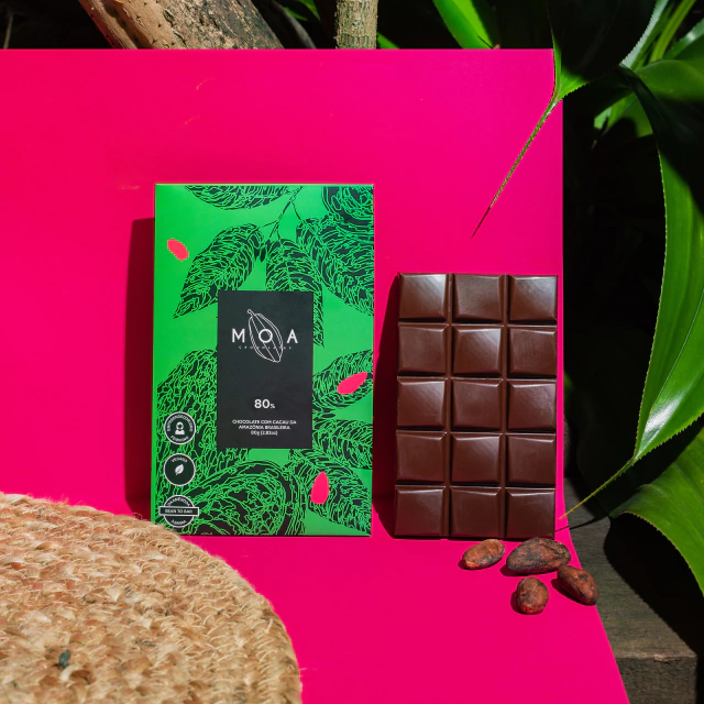 Chocolate da Amazônia brasileira, natural e puro, feito com alto teor de cacau, com poucos ingredientes, sem glúten, sem aditivos como: gorduras hidrogenadas, conservantes, emulsificantes e aromatizantes.